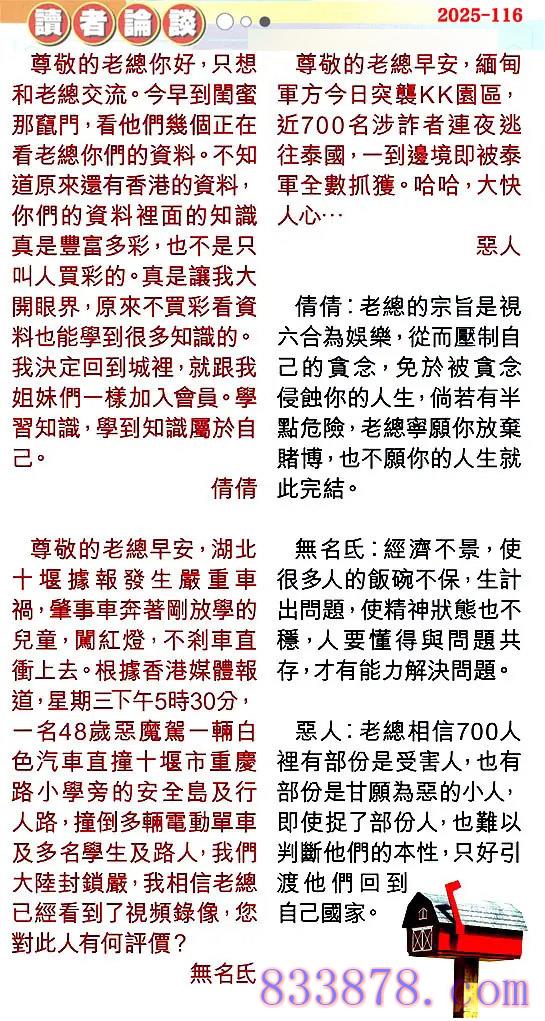 116期:彩民推荐贴信读者论坛