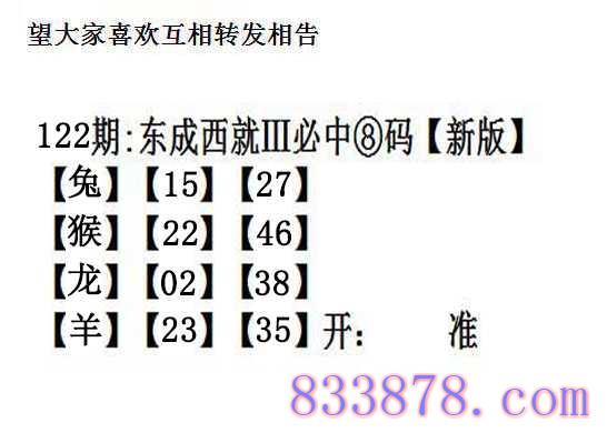 122期:另版【东成西就四肖8码】